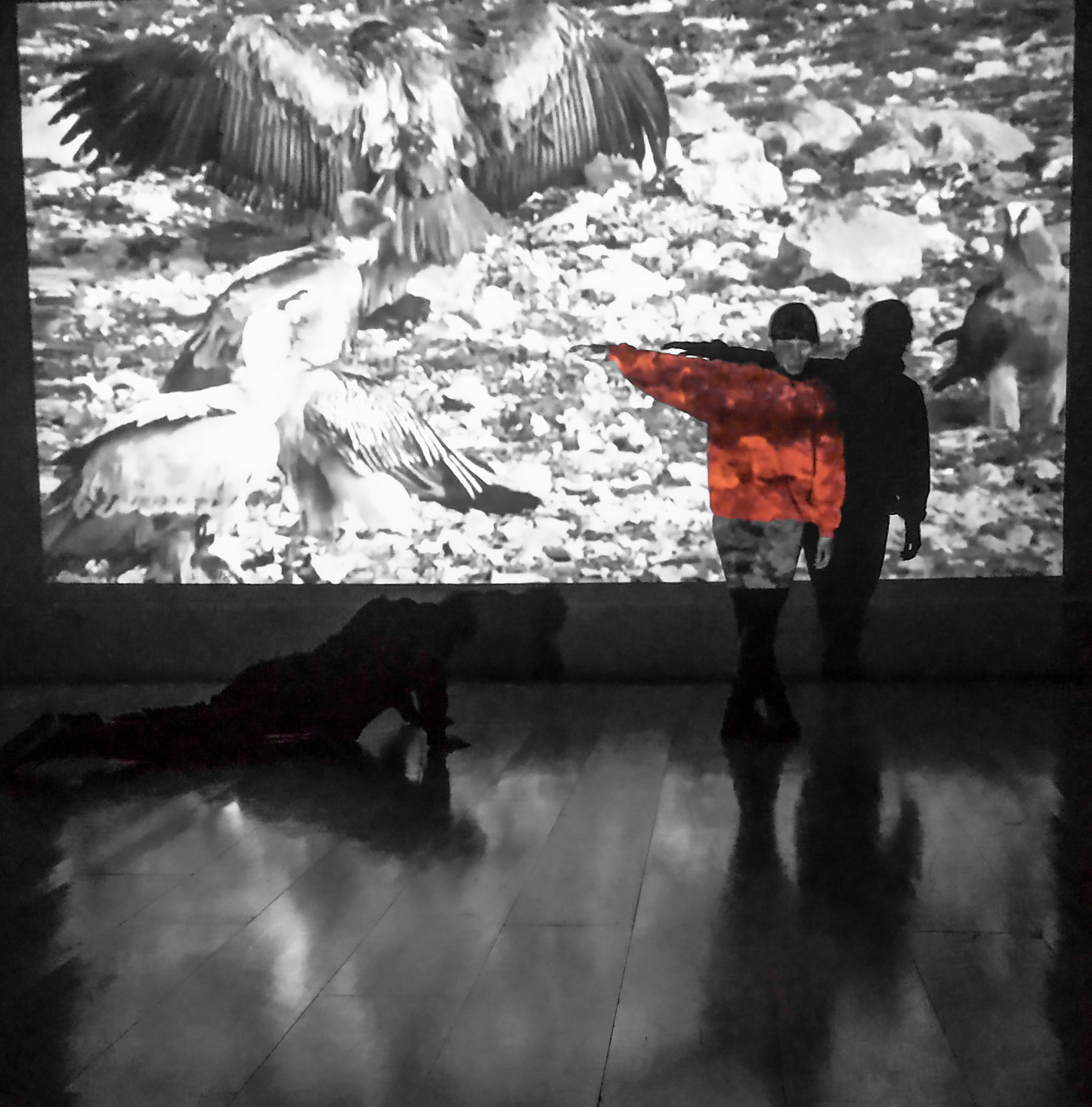 En Buitres, buscamos posicionarnos políticamente, pero antes del lenguaje. Esto es: nos interesa el ejercicio de “vaciar” el cuerpo de sus sentidos culturales y observar esta “muerte” como un gesto micro político de renacimiento. Este gesto concreto y material es un modo de relacionarnos desde el cuerpo al mundo. Un gesto que se acciona en su devenir, como lo fue aquel gesto de Lautaro en tanto doble acción revolucionaria: la muerte de Pedro de Valdivia a manos de este cacique mapuche es una buena analogía para entender la muerte en territorio de conquista. Identidad, subjetividad y emancipación terminan siendo elementos de una misma triangulación dramatúrgica.