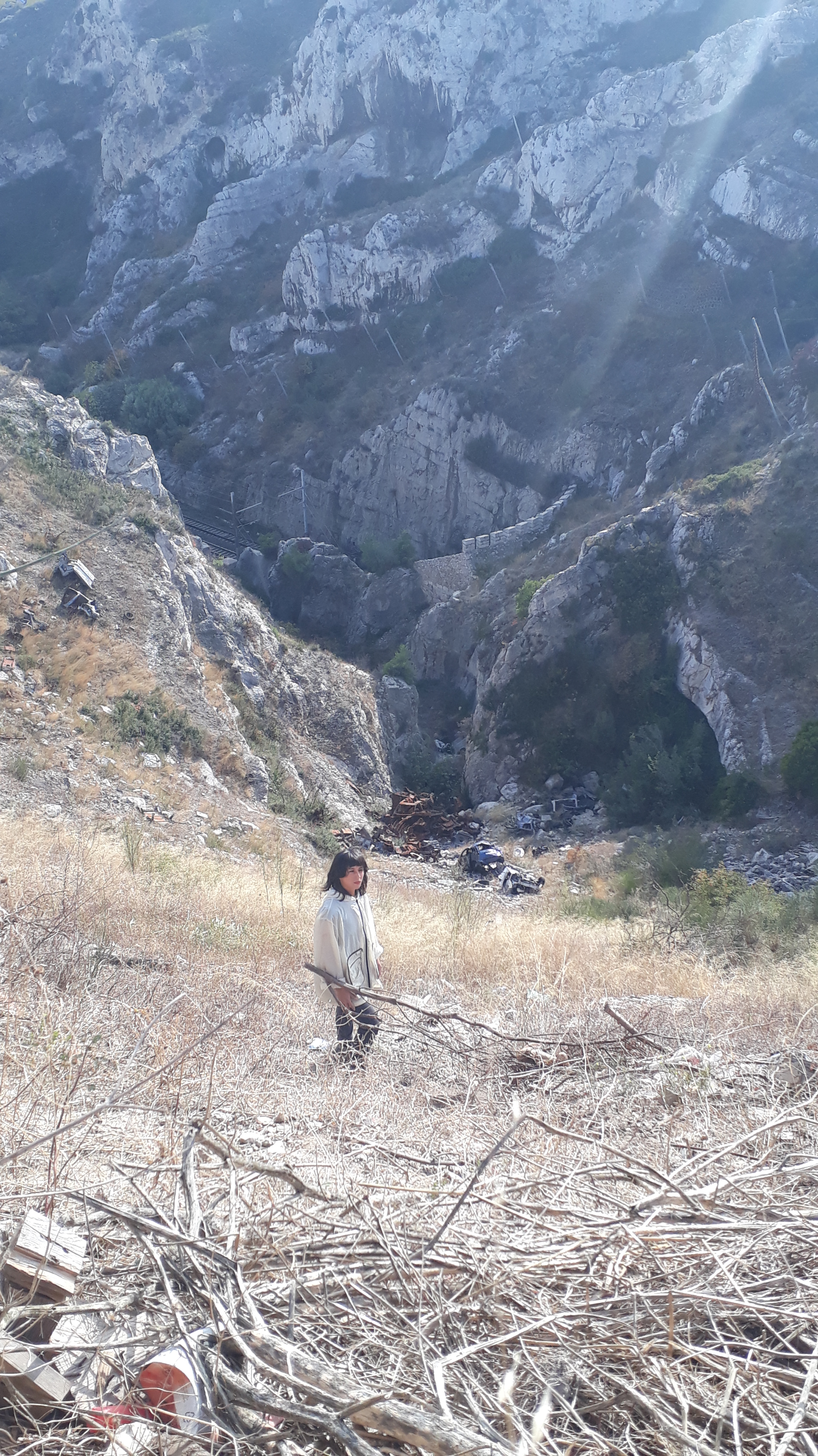 Cette falaise est un cimetière de voitures. En les jetant ils ont voulu faire disparaître les traces. Mais c’est impossible. Il y a des bouts de matière qui s’arrêtent à mi-chemin ? Ils restent comme s’ils exigeaient qu’on ne les oublient pas. La matière prends du temps avant de se transformer.